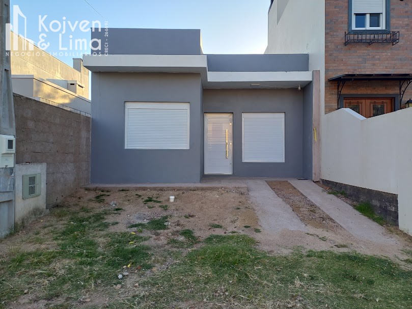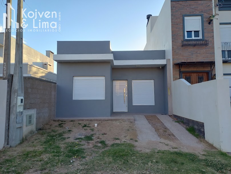Casa de alvenaria com 78m², 2 dormitórios, sala de estar, cozinha, banheiro, pátio pequeno nos fundos.
