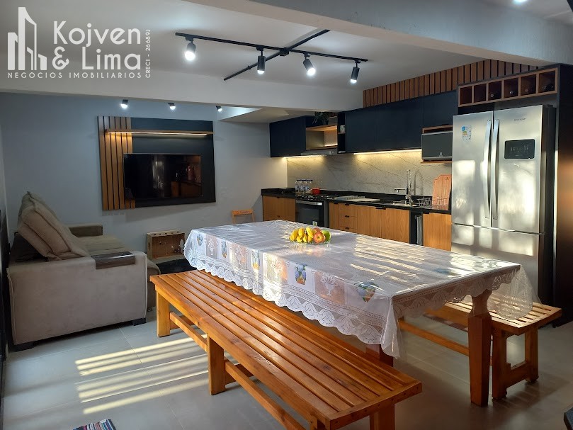 Casa de alvenaria com 135m², 1 Dormitório, 2 Salas de estar (1 pode ser transformada em dormitório), 1 escritório em espaço aberto, 1 Banheiro social ( torneira com água quente elétrica ), 1 lavanderia, 1 home bar, 1 Cozinha espaçosa com parrilla completa ( Pia com torneira elétrica), 1 despensa, 1 área de Serviço (corredor lateral) 1alpendre e pequeno pátio.